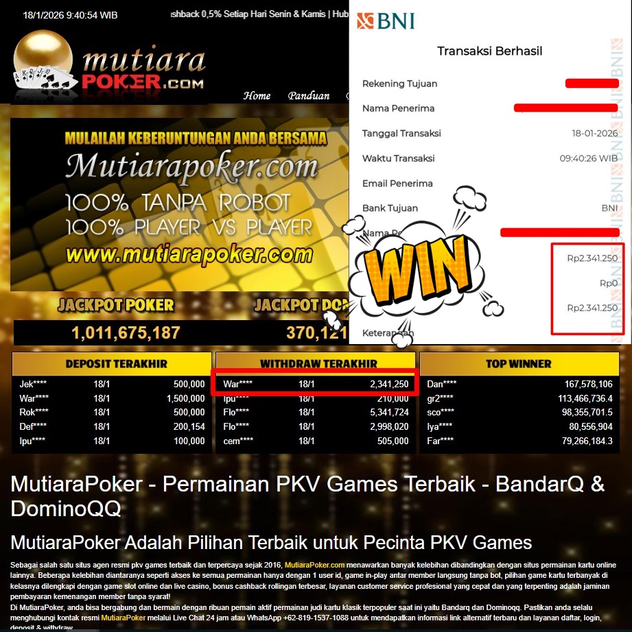 Bukti Withdraw MutiaraPoker