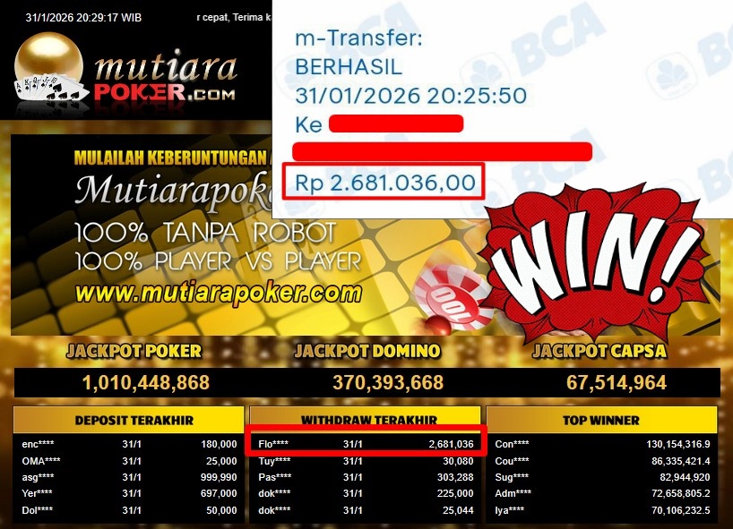 Bukti Withdraw ( 2.681.036,- ) Member Setia MutiaraPoker