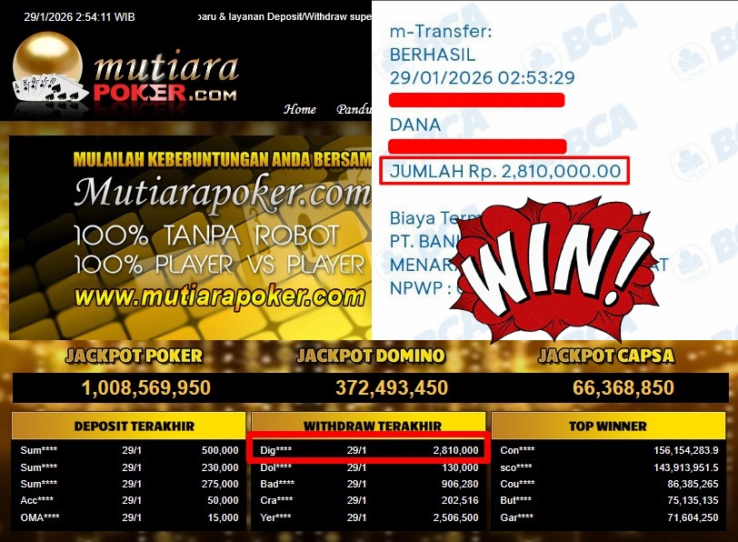 Bukti Withdraw ( 2.810.000,- ) Member Setia MutiaraPoker