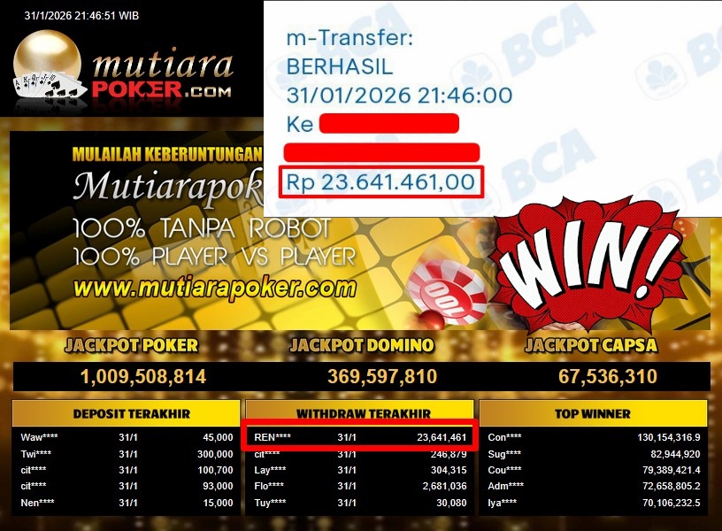 Bukti Withdraw ( 23.641.461,- ) Member Setia MutiaraPoker