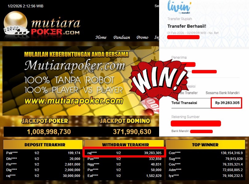 Bukti Withdraw ( 39.283.305,- ) Member Setia MutiaraPoker
