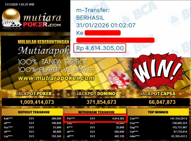 Bukti Withdraw ( 4.614.305,- ) Member Setia MutiaraPoker