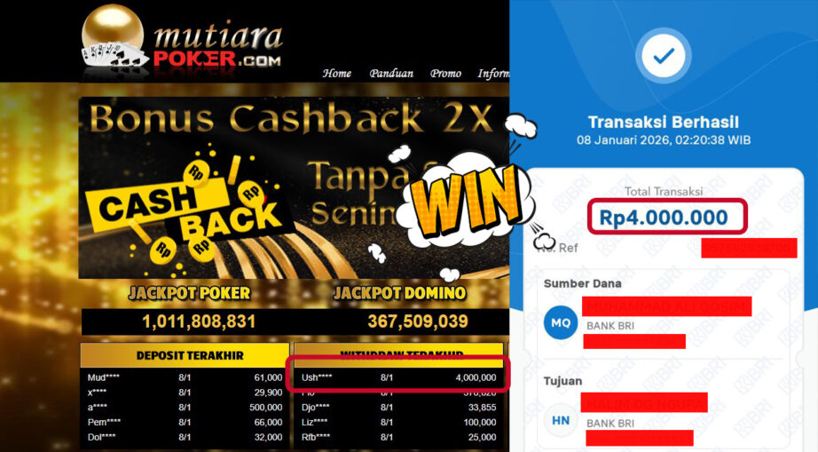 Bukti Withdraw ( 4,000,000,- ) Member Setia MutiaraPoker