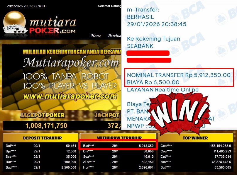 Bukti Withdraw ( 5.918.850,- ) Member Setia MutiaraPoker