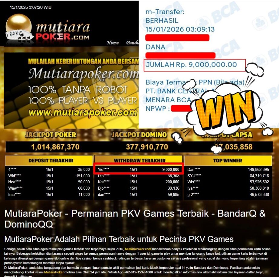 Bukti Withdraw MutiaraPoker