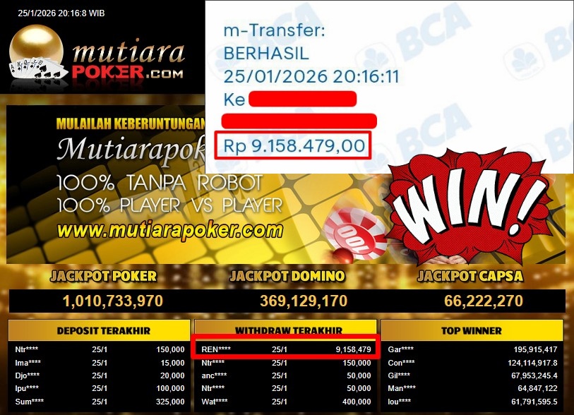 Bukti Withdraw ( 9.158.479,- ) Member Setia MutiaraPoker