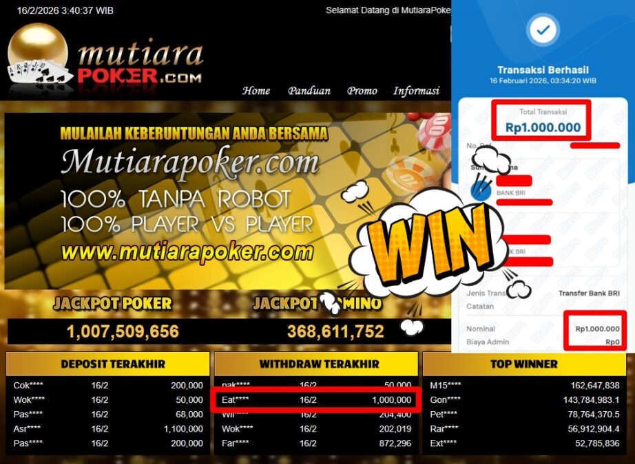 Bukti Withdraw ( 1.000.000,-) Member Setia Mutiarapoker