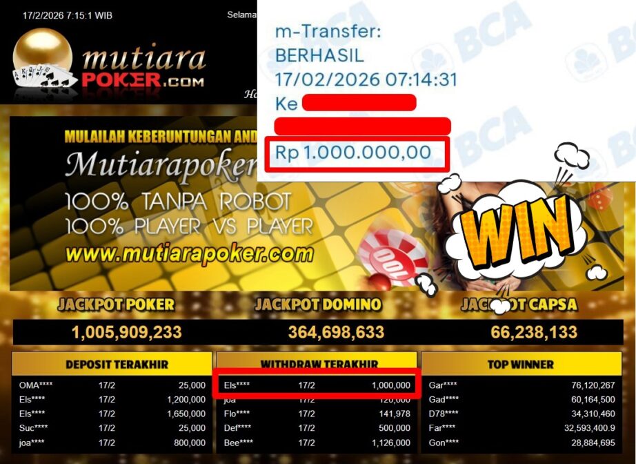 Bukti Withdraw MutiaraPoker