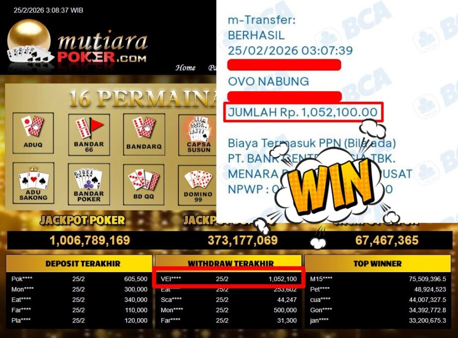 Bukti Withdraw ( 1.052.100,-) Member Setia Mutiarapoker