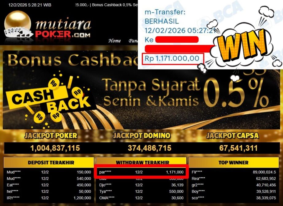 Bukti Withdraw ( 1.171.000,-) Member Setia Mutiarapoker