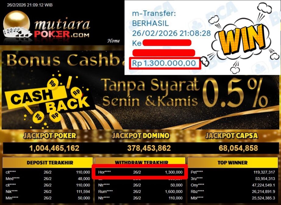 Bukti Withdraw MutiaraPoker