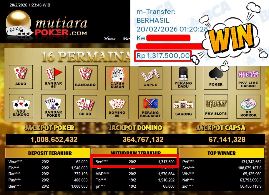 Bukti Withdraw MutiaraPoker