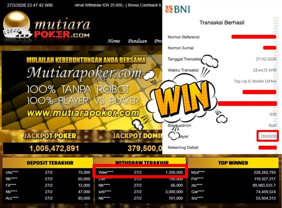 Bukti Withdraw MutiaraPoker