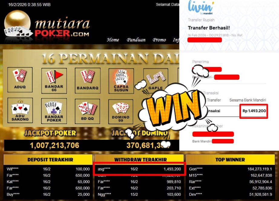 Bukti Withdraw ( 1.493.200,-) Member Setia Mutiarapoker