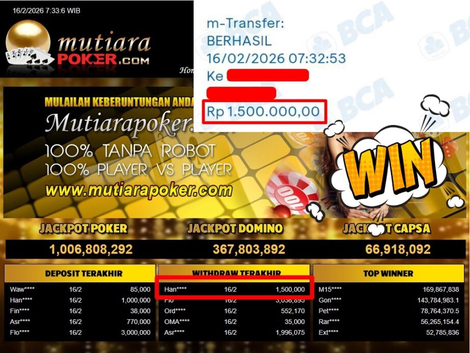 Bukti Withdraw ( 1.500.000,-) Member Setia Mutiarapoker