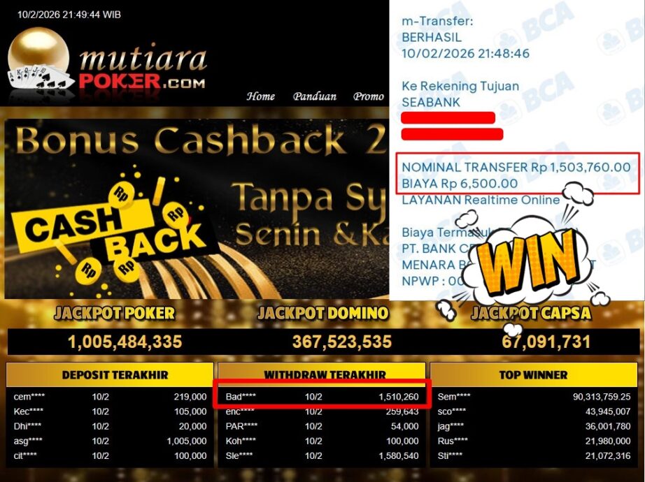 Bukti Withdraw ( 1.510.260,-) Member Setia Mutiarapoker
