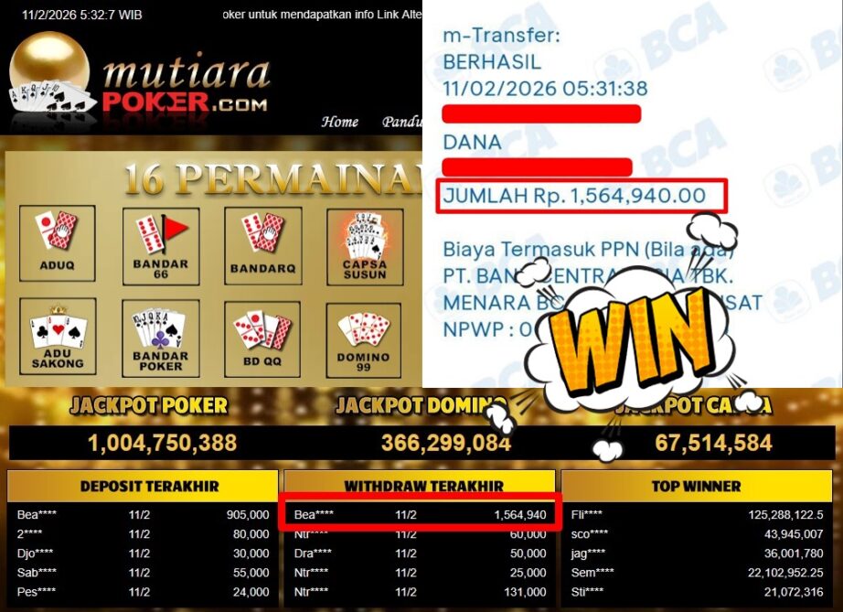 Bukti Withdraw ( 1.564.940,-) Member Setia Mutiarapoker