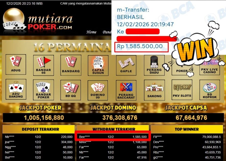 Bukti Withdraw ( 1.585.500,-) Member Setia Mutiarapoker