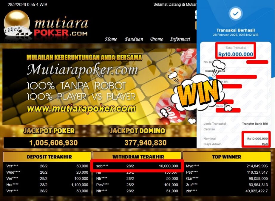 Bukti Withdraw ( 10.000.000,-) Member Setia Mutiarapoker
