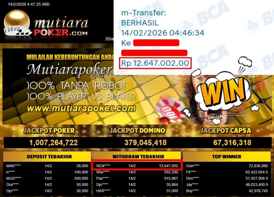 Bukti Withdraw ( 12.647.002,-) Member Setia Mutiarapoker