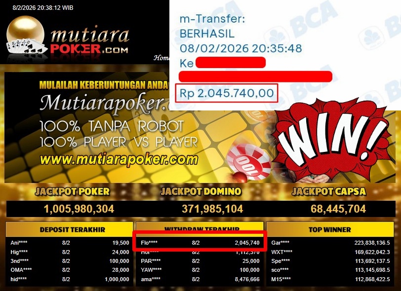 Bukti Withdraw ( 2.045.740,- ) Member Setia MutiaraPoker