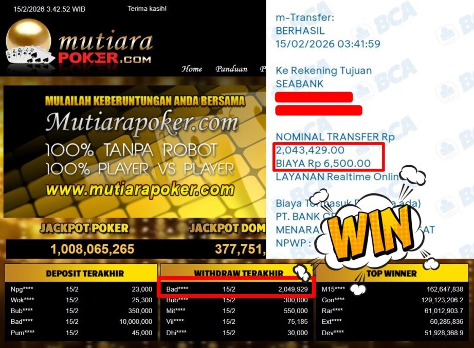 Bukti Withdraw MutiaraPoker