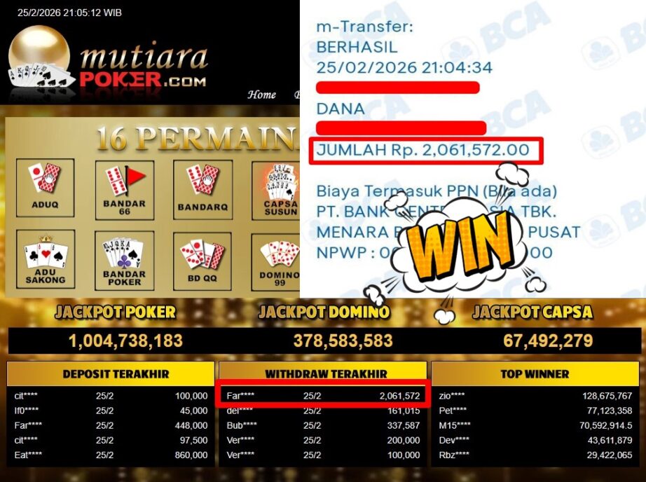 Bukti Withdraw ( 2.061.572,-) Member Setia Mutiarapoker