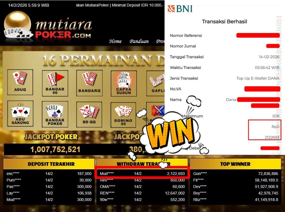 • Bukti Withdraw ( 2.122.693,-) Member Setia Mutiarapoker