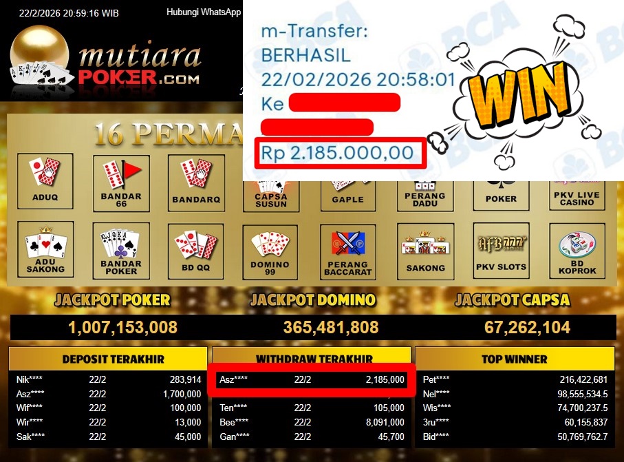 Bukti Withdraw ( 2.185.000,-) Member Setia Mutiarapoker