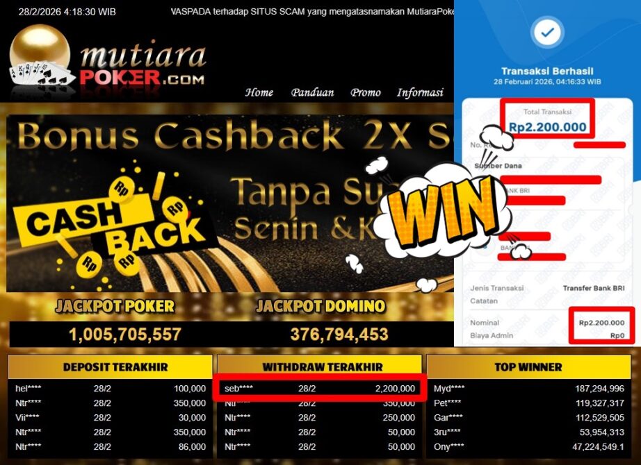 Bukti Withdraw ( 2.200.000,-) Member Setia Mutiarapoker