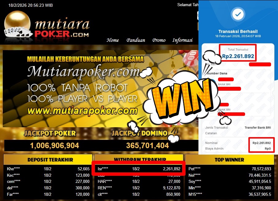 Bukti Withdraw ( 2.261.892,-) Member Setia Mutiarapoker