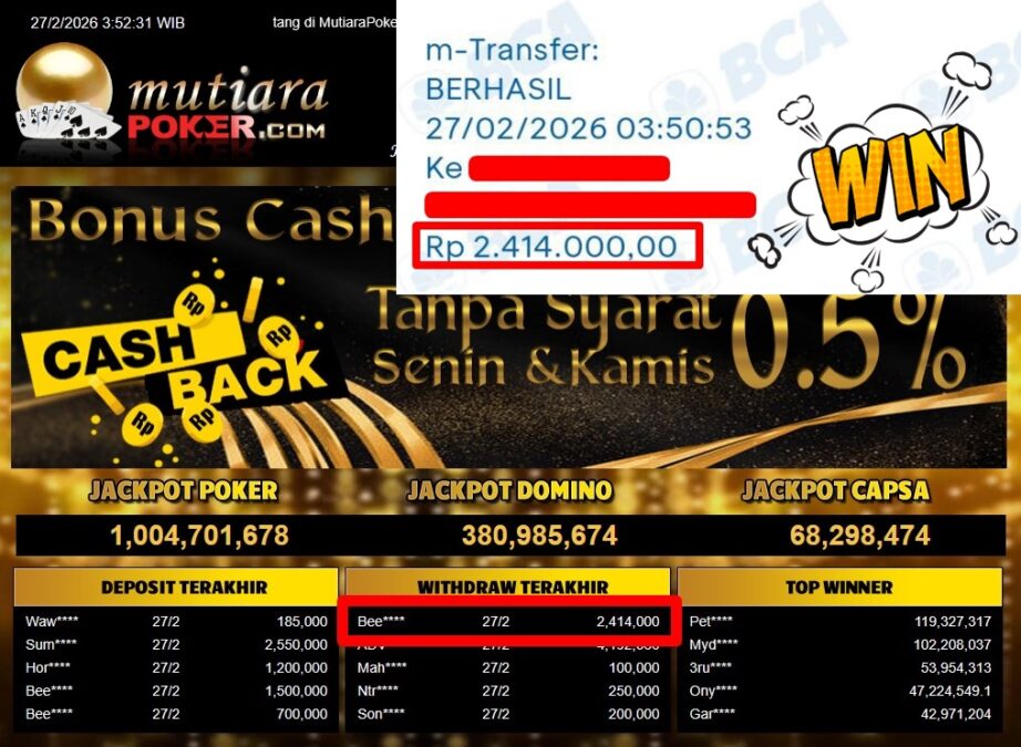 Bukti Withdraw ( 2.414.000,-) Member Setia Mutiarapoker