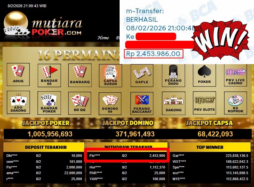Bukti Withdraw ( 2.453.986,- ) Member Setia MutiaraPoker