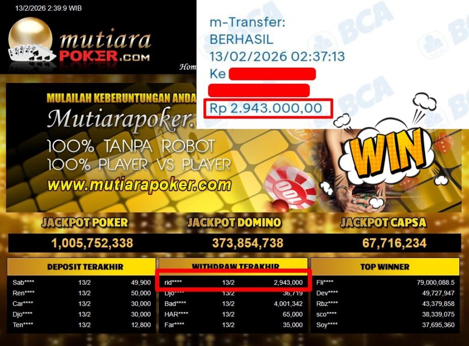 Bukti Withdraw ( 2.943.000,-) Member Setia Mutiarapoker