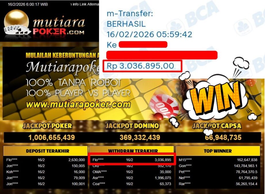 Bukti Withdraw ( 3.036.895,-) Member Setia Mutiarapoker