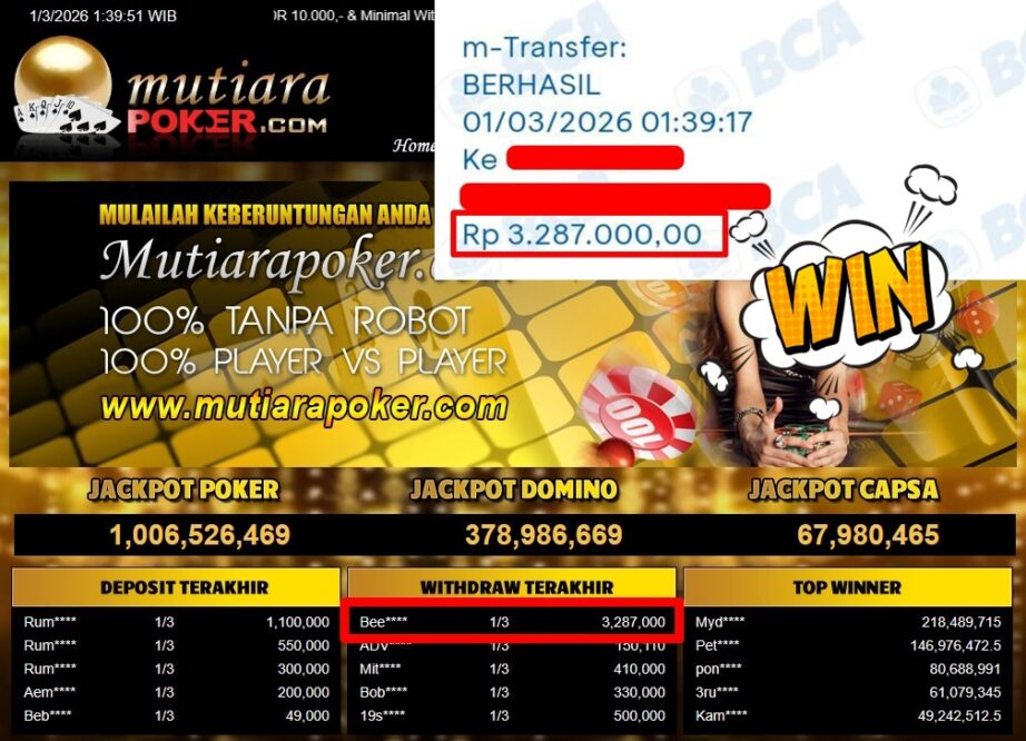 Bukti Withdraw ( 3.287.000,-) Member Setia Mutiarapoker