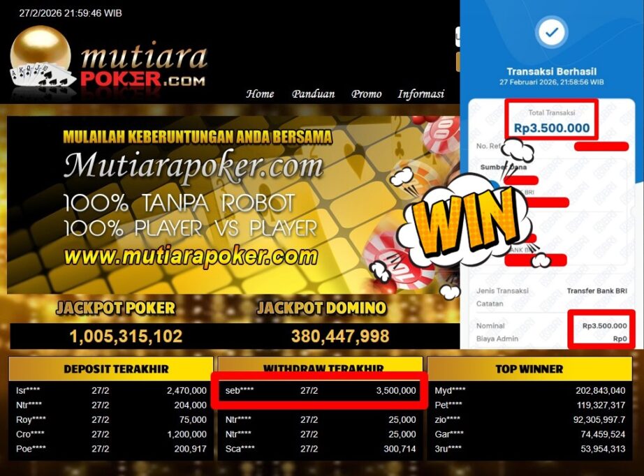 Bukti Withdraw MutiaraPoker