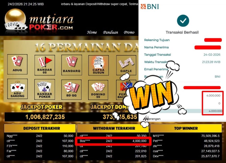 Bukti Withdraw MutiaraPoker