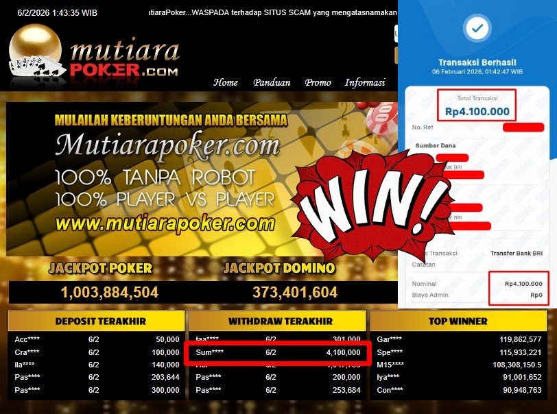 Bukti Withdraw ( 4.100.000,- ) Member Setia MutiaraPoker