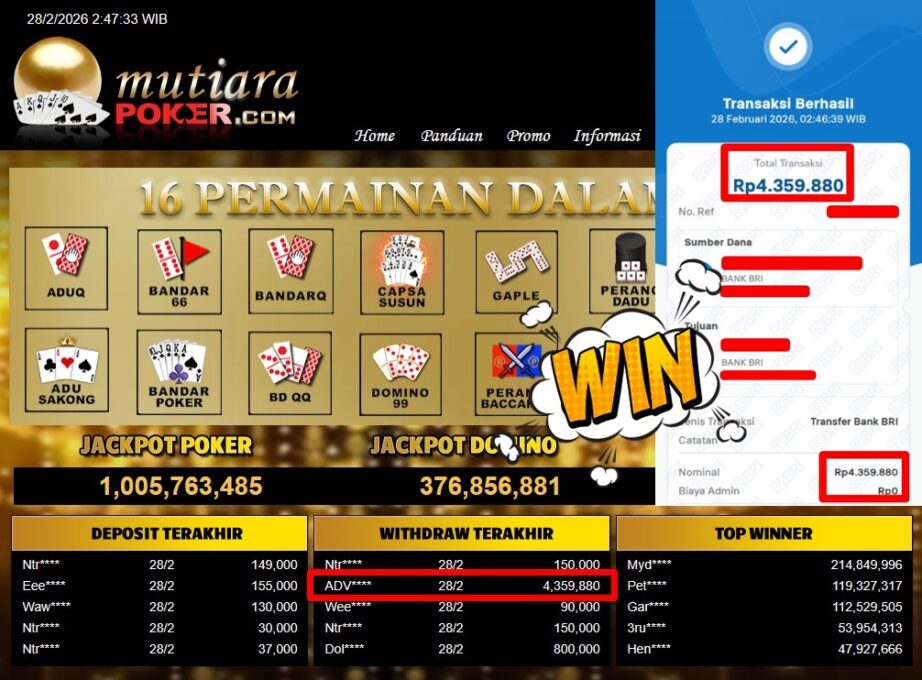 Bukti Withdraw MutiaraPoker