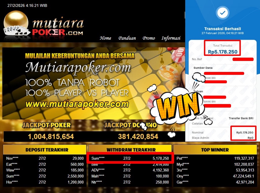 Bukti Withdraw ( 5.178.250,-) Member Setia Mutiarapoker