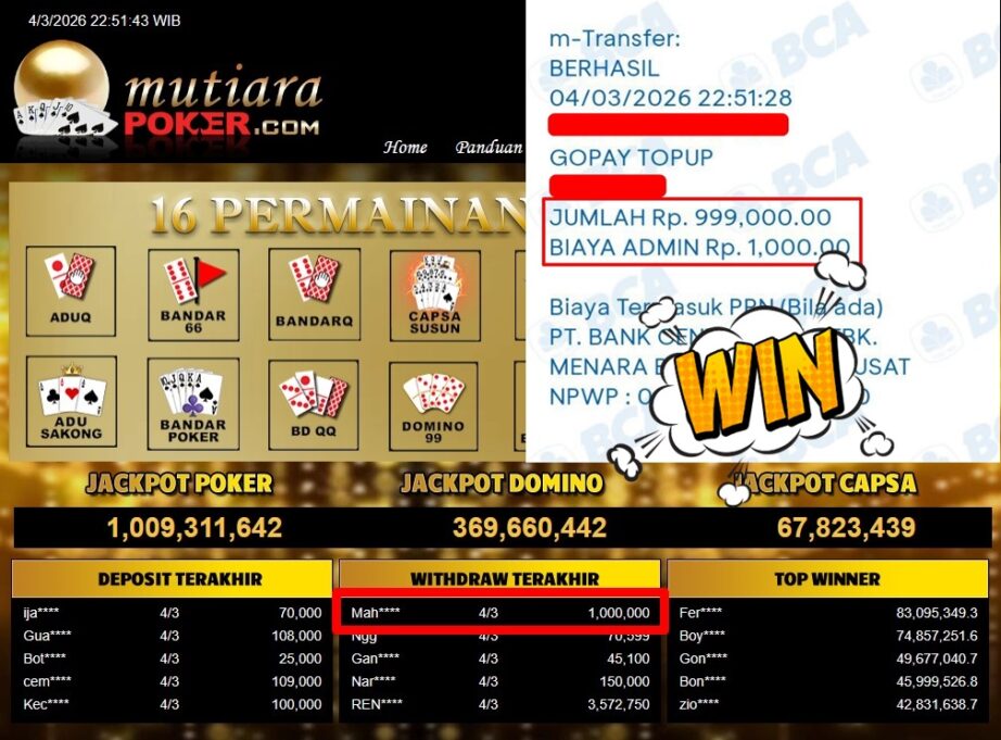 Bukti Withdraw MutiaraPoker