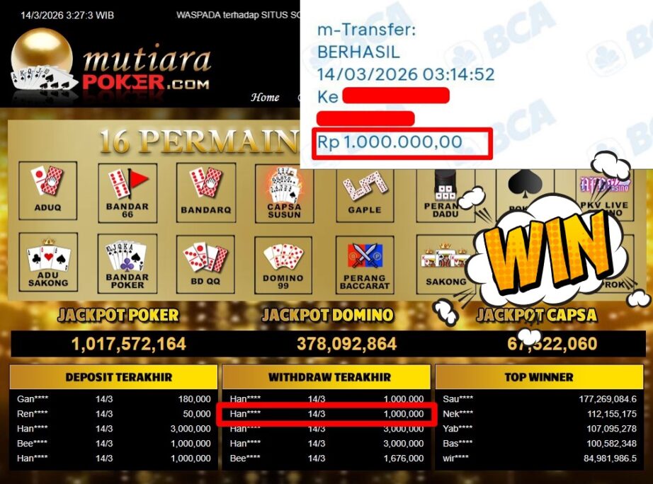 Bukti Withdraw MutiaraPoker
