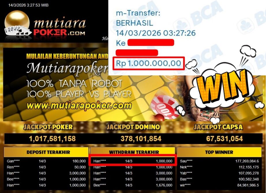 Bukti Withdraw MutiaraPoker