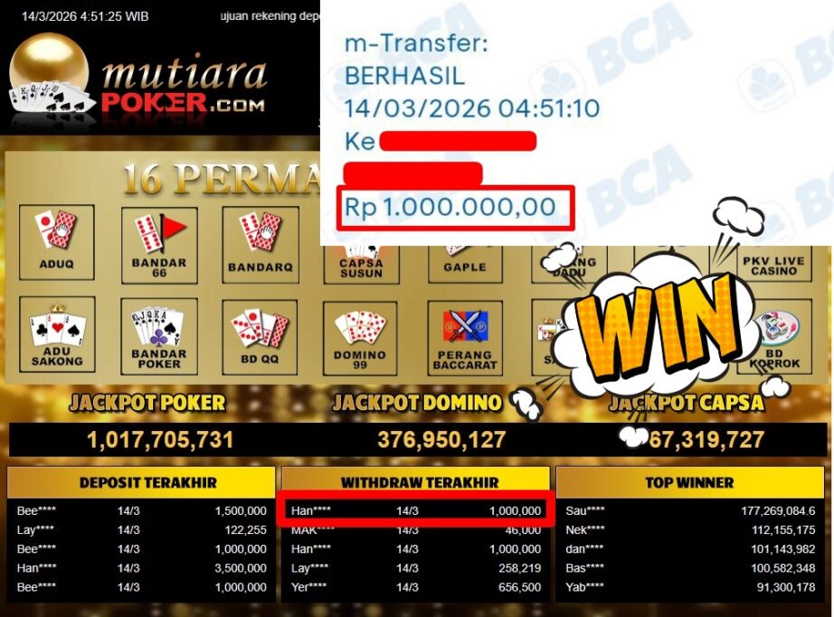 Bukti Withdraw ( 1.000.000,-) Member Setia Mutiarapoker
