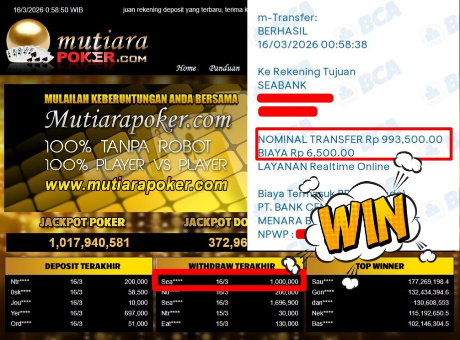 Bukti Withdraw MutiaraPoker