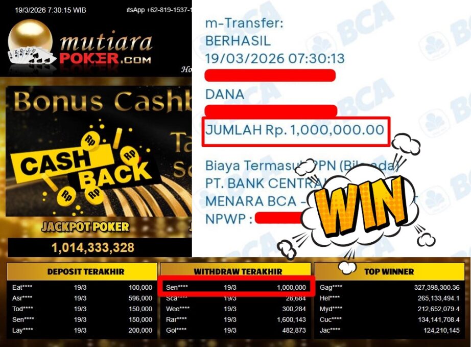 Bukti Withdraw ( 1.000.000,-) Member Setia Mutiarapoker