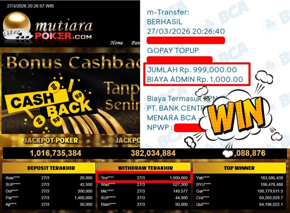 Bukti Withdraw ( 1.000.000,-) Member Setia Mutiarapoker