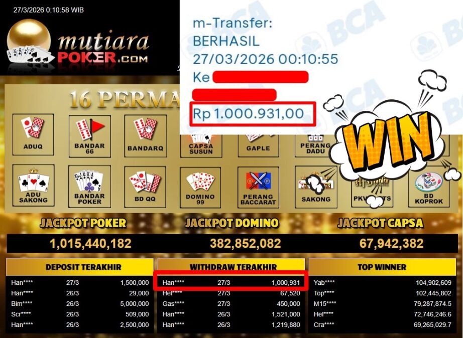 Bukti Withdraw MutiaraPoker