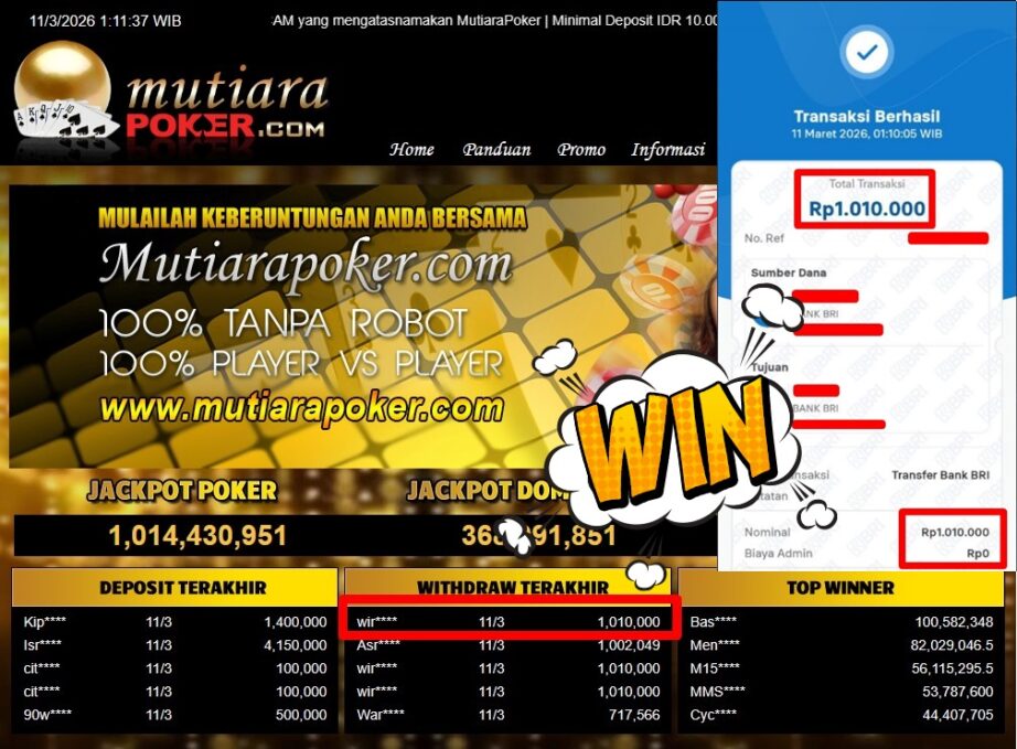 Bukti Withdraw MutiaraPoker